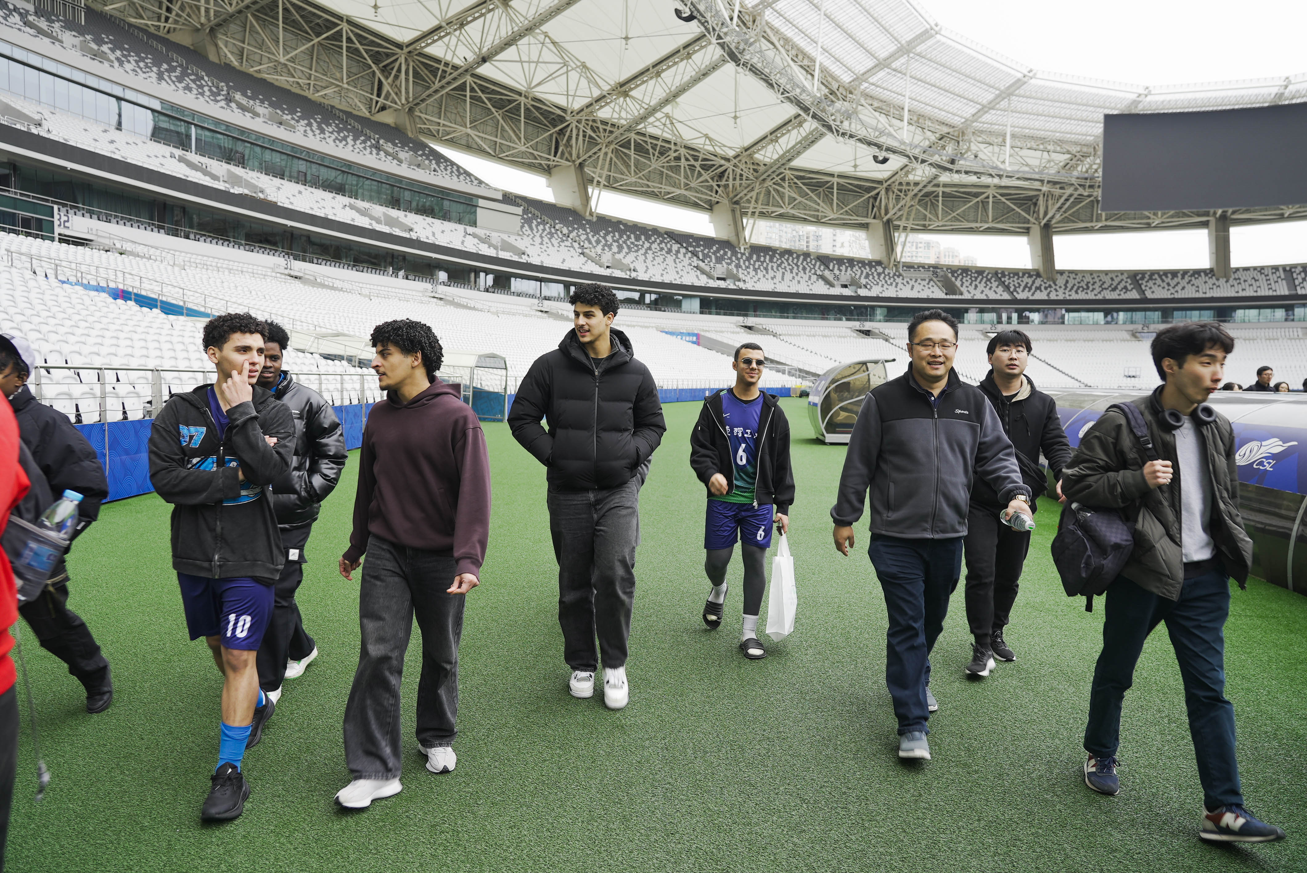 On March 29, international students from ECUST’s College of International Education enjoyed an exclusive behind-the-scenes look at Chinese professional football during visits to Shanghai Stadium and the Shanghai Shenhua Training Base.